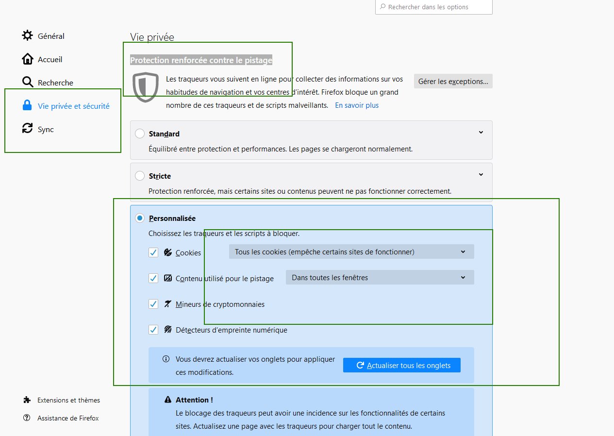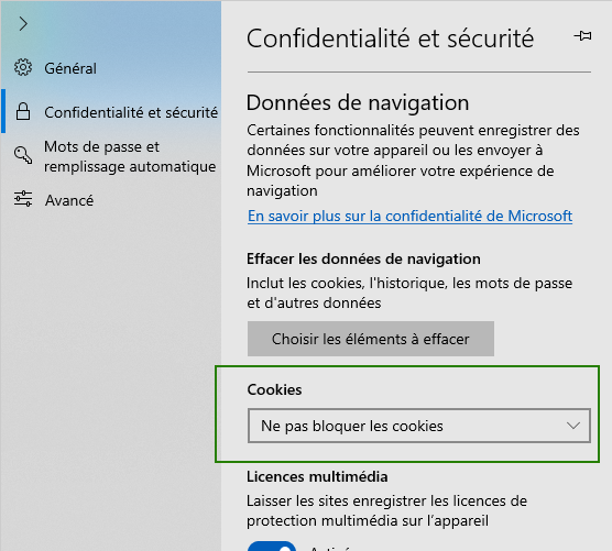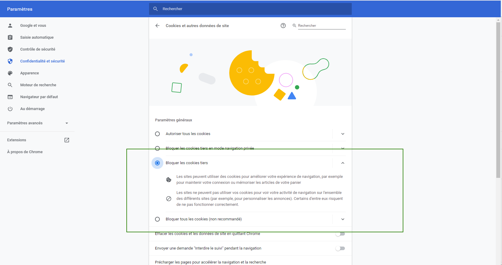 Un blocage de cookies tiers peut être activé par défaut dans votre navigateur. Cela vous empêche donc de charger correctement vos fichiers. Voici comment désactiver ce blocage :