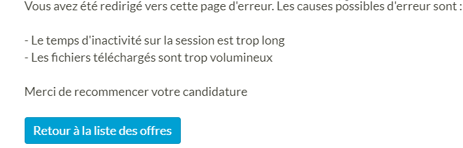 Dans ce cas nous vous conseillons de recommencer la procédure en postulant sur une offre.